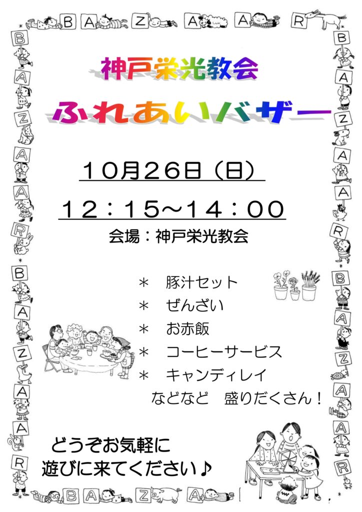 バザーは10月26日(日)礼拝後、午後12時15分頃からのスタート、